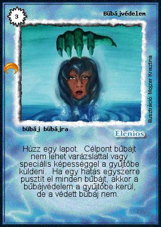 Kiadás: Chara-din visszatér Gyakoriság: gyakori Lapszín (isten): Elenios Típus: bűbáj bűbájra Szöveg: Húzz egy lapot. Célpont bűbájt nem lehet varázslattal vagy speciális képességgel a gyűjtőbe küldeni. Ha egy hatás egyszerre pusztít el minden bűbájt, akkor a bűbájvédelem a gyűjtőbe kerül, de a védett bűbáj nem. Illusztráció: Mojzer Krisztina